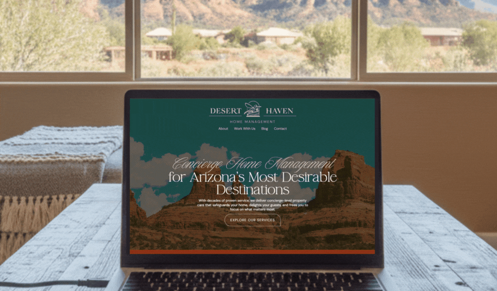 When Danielle and Franz acquired Desert Haven, they inherited a high-performing local business with a sterling reputation for care and excellence, but the brand didn’t reflect the level of intention or polish they were bringing to the operation. The original identity was outdated and inconsistent, lacking the strategic foundation needed to elevate Desert Haven into a boutique, experience-first brand. We delivered a full brand transformation: refined messaging and positioning, a new visual identity, a high-performing website, and a custom-designed lead magnet paired with a strategic email welcome sequence. We helped clarify their service offerings, sharpen their voice, and align their visual storytelling with their values of intentional hospitality, high-touch care, and local trust. The result is a cohesive brand that resonates with discerning STR owners and positions Desert Haven as the go-to partner for elevated property care in Sedona.